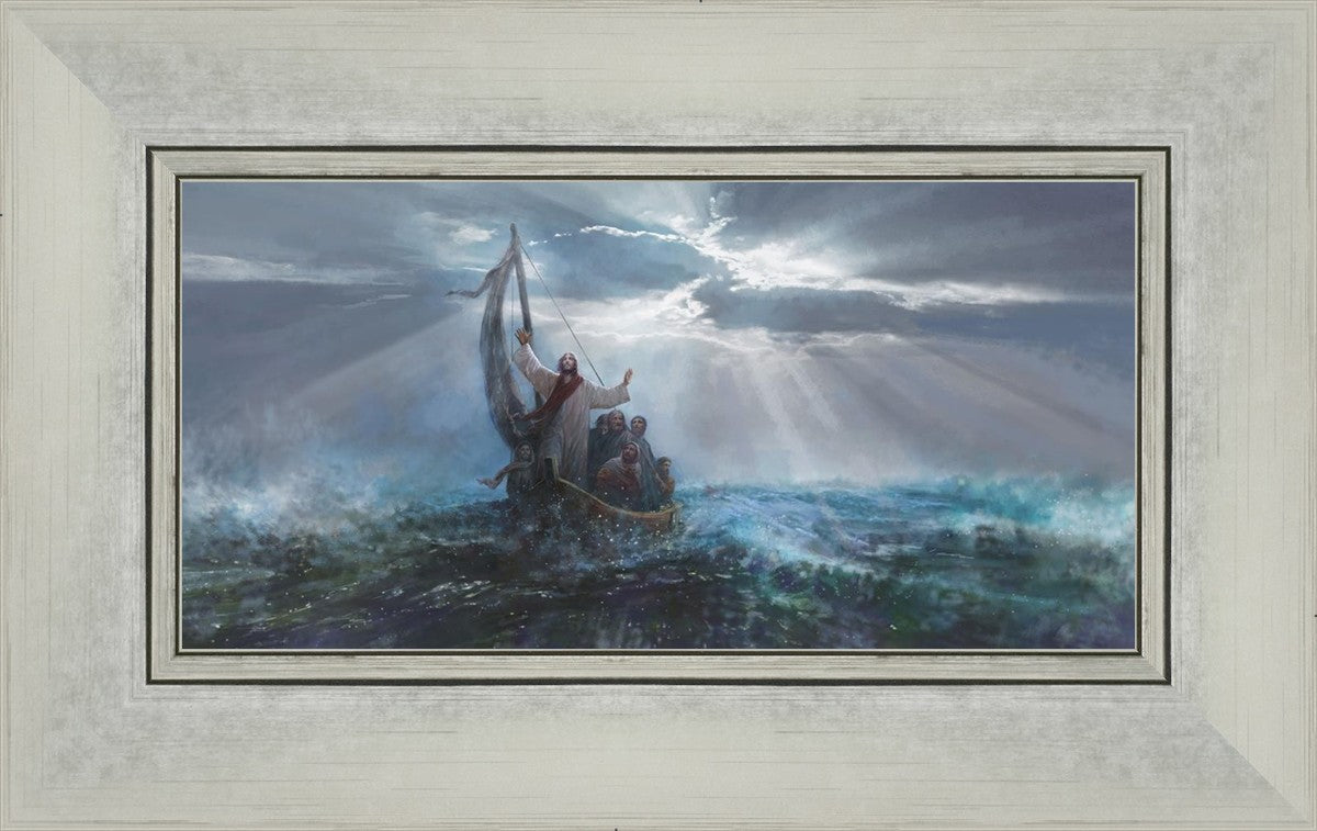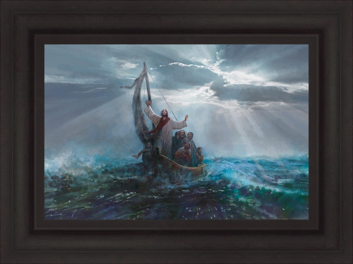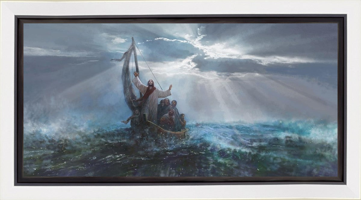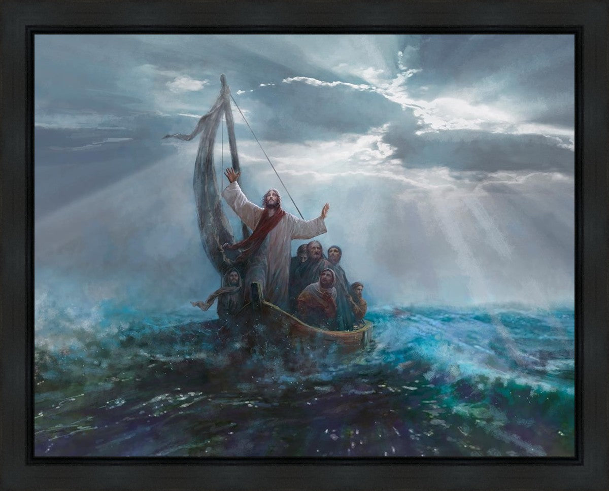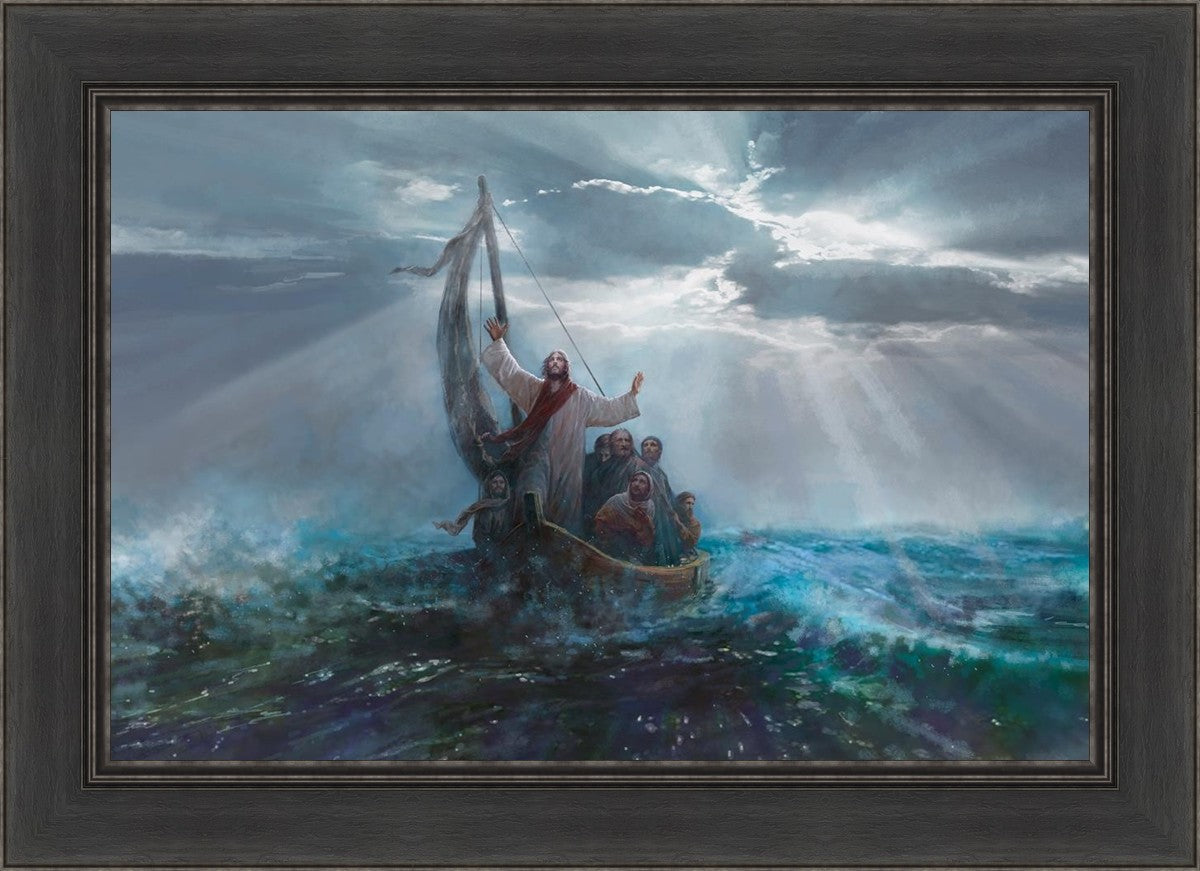 Peace Be Still is a painting by Yongsung Kim. This painting depicts Jesus Christ calming the raging sea amidst a storm.