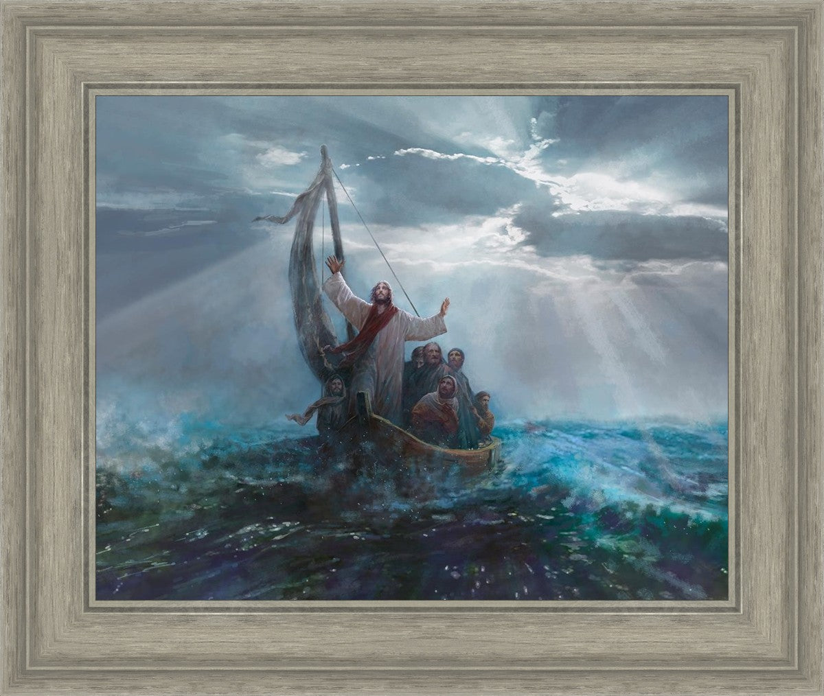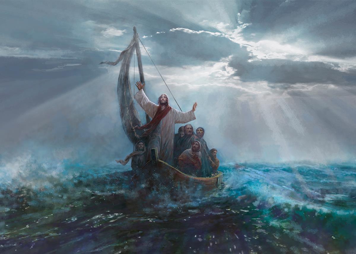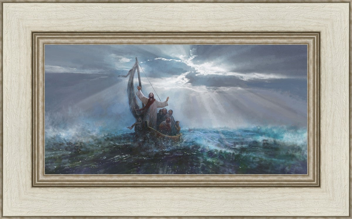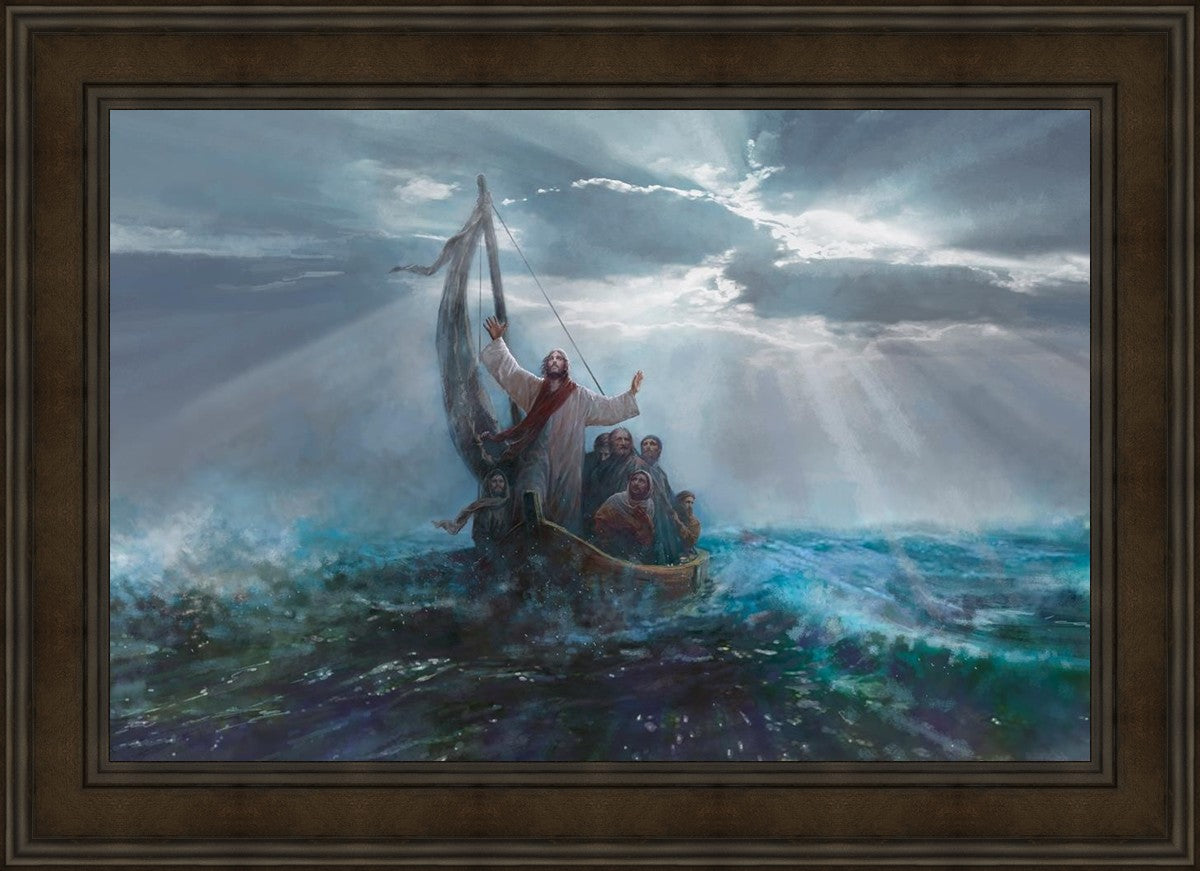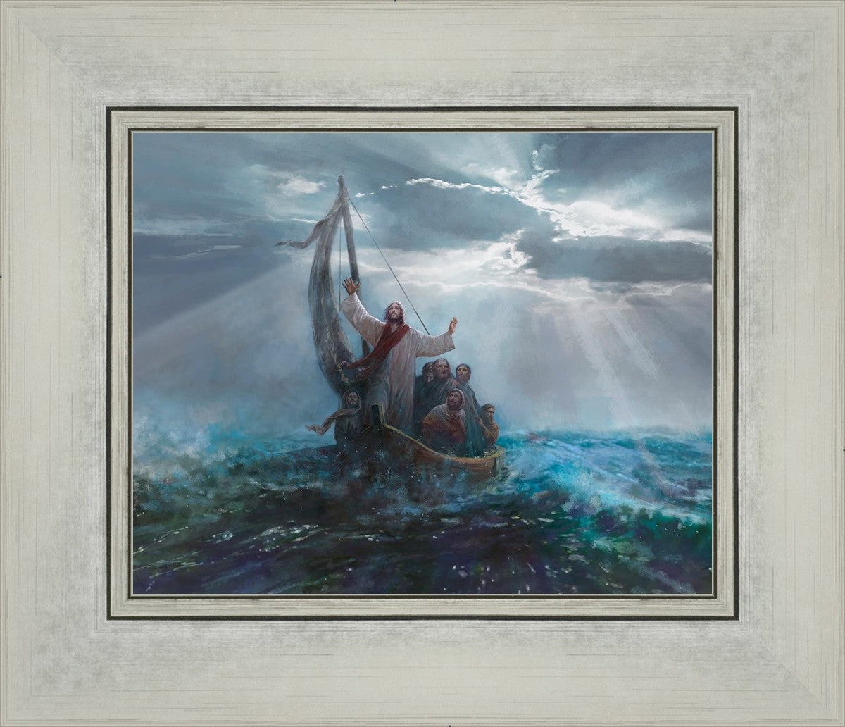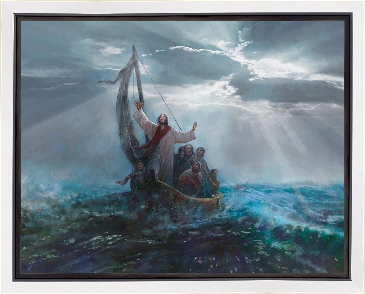 Peace Be Still is a painting by Yongsung Kim. This painting depicts Jesus Christ calming the raging sea amidst a storm.