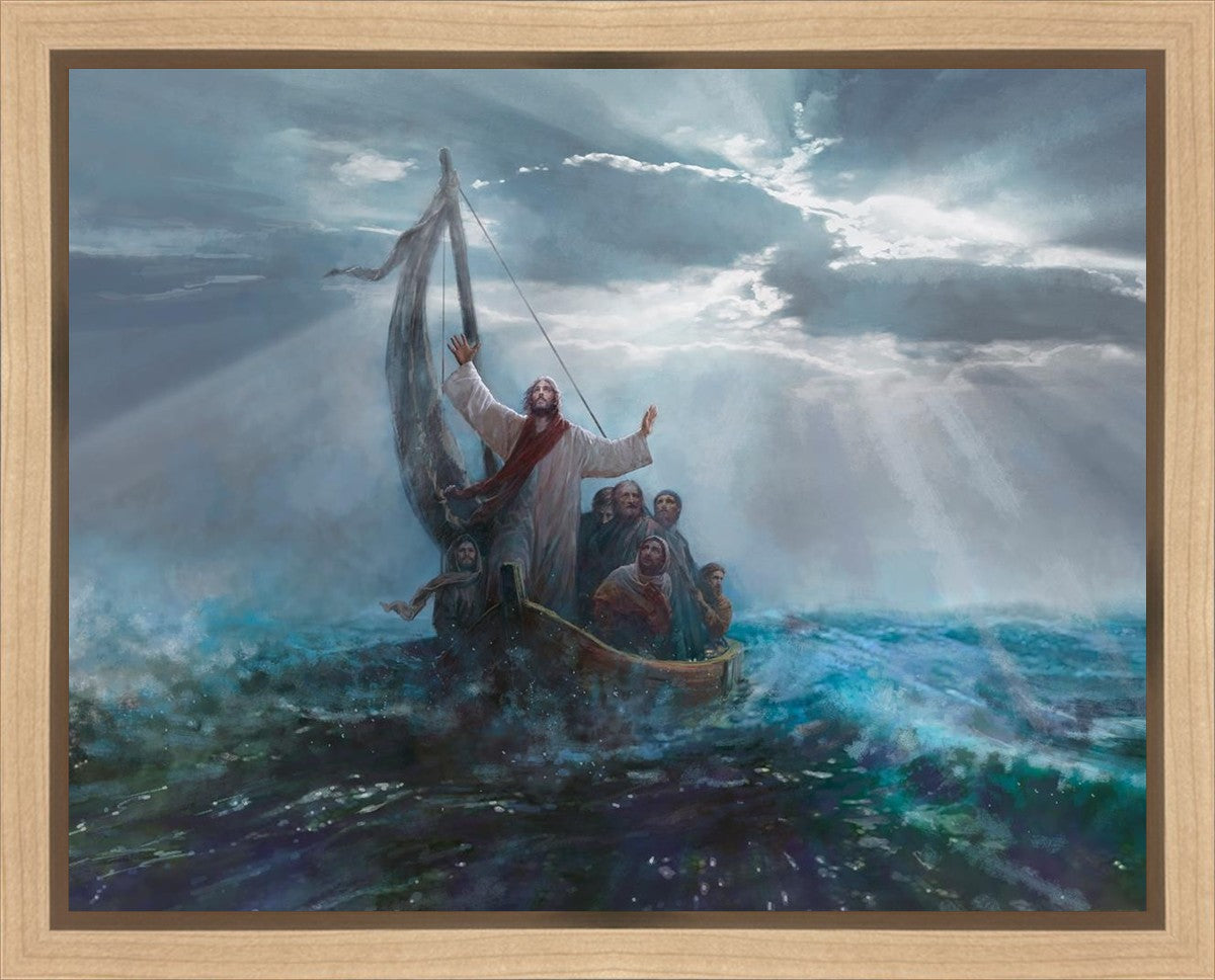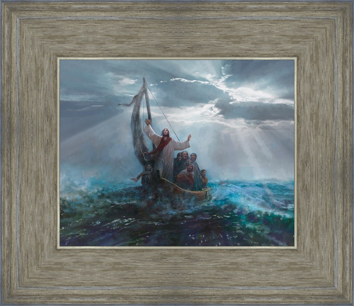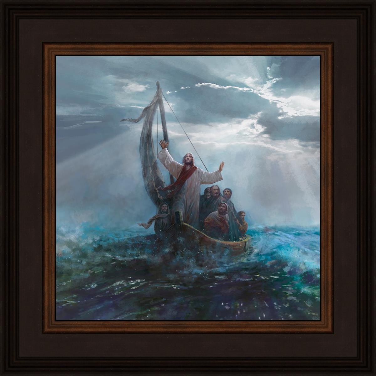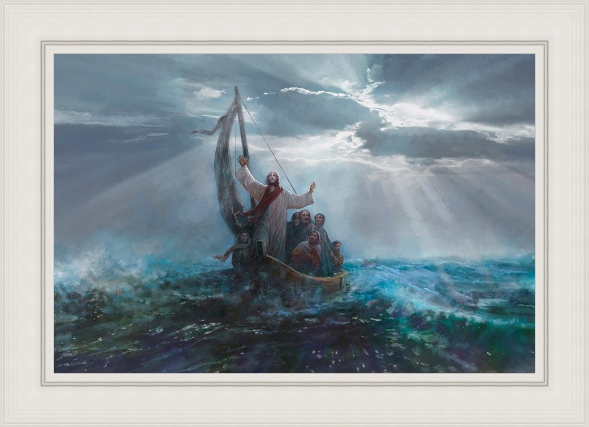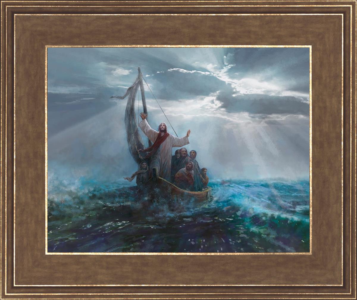 Peace Be Still is a painting by Yongsung Kim. This painting depicts Jesus Christ calming the raging sea amidst a storm.