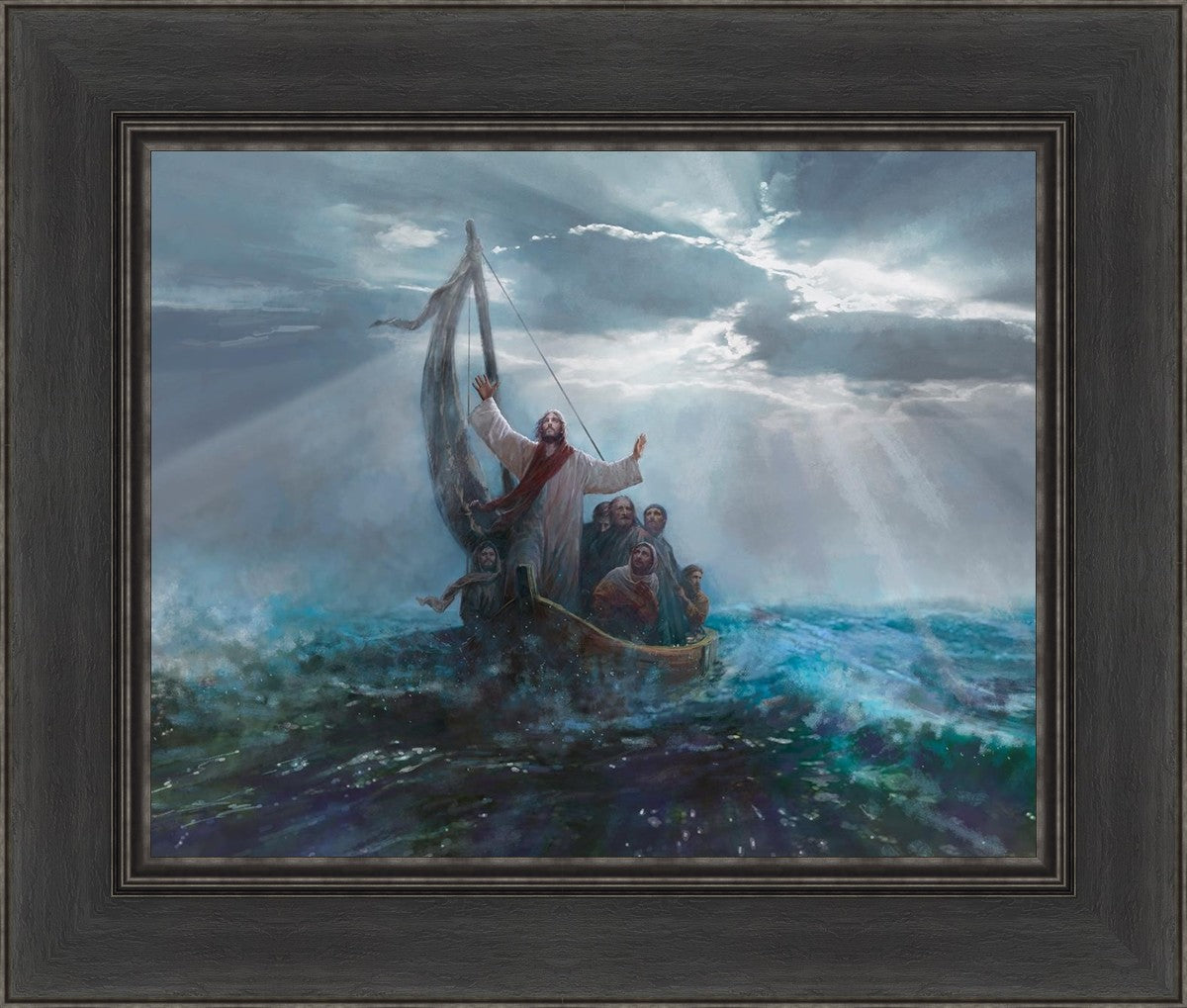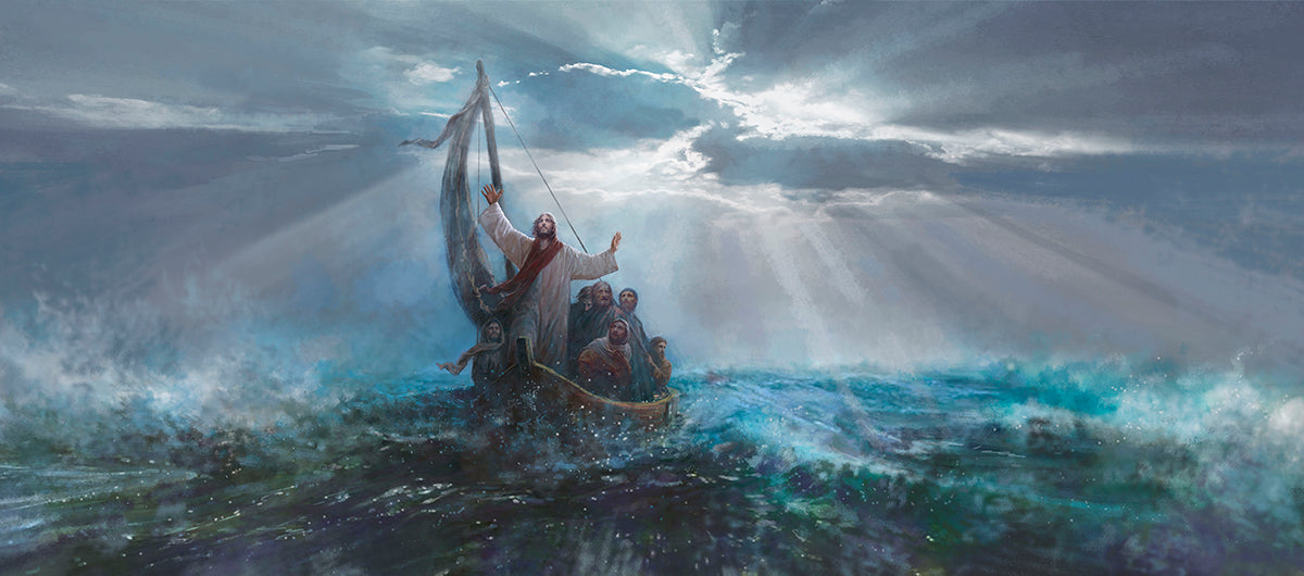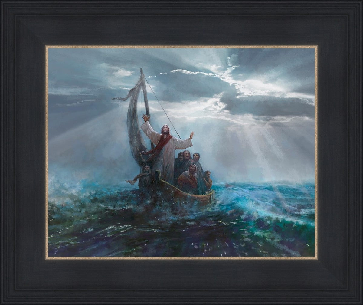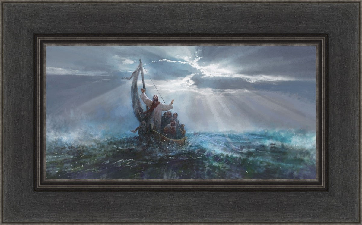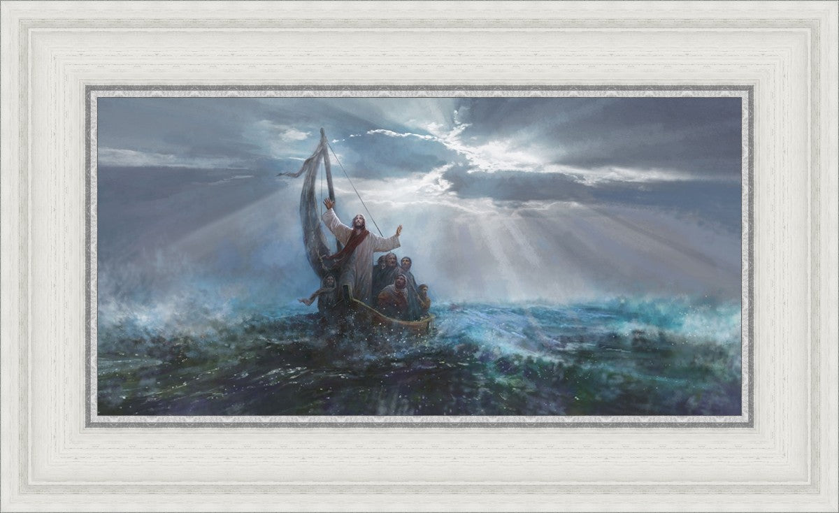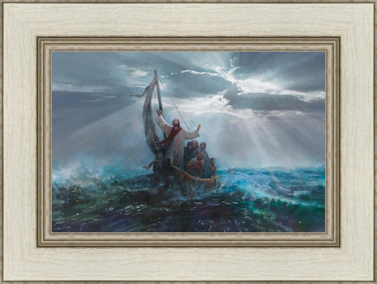 Peace Be Still is a painting by Yongsung Kim. This painting depicts Jesus Christ calming the raging sea amidst a storm.