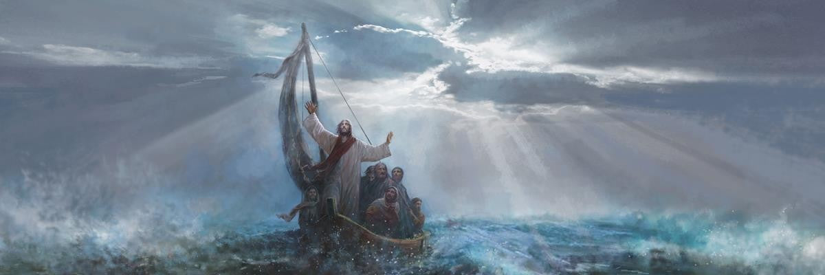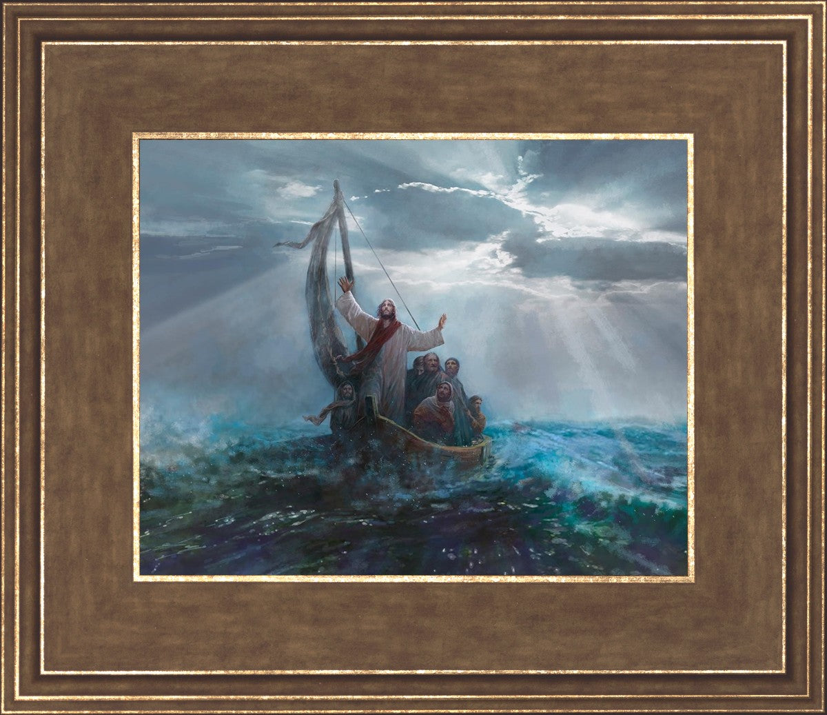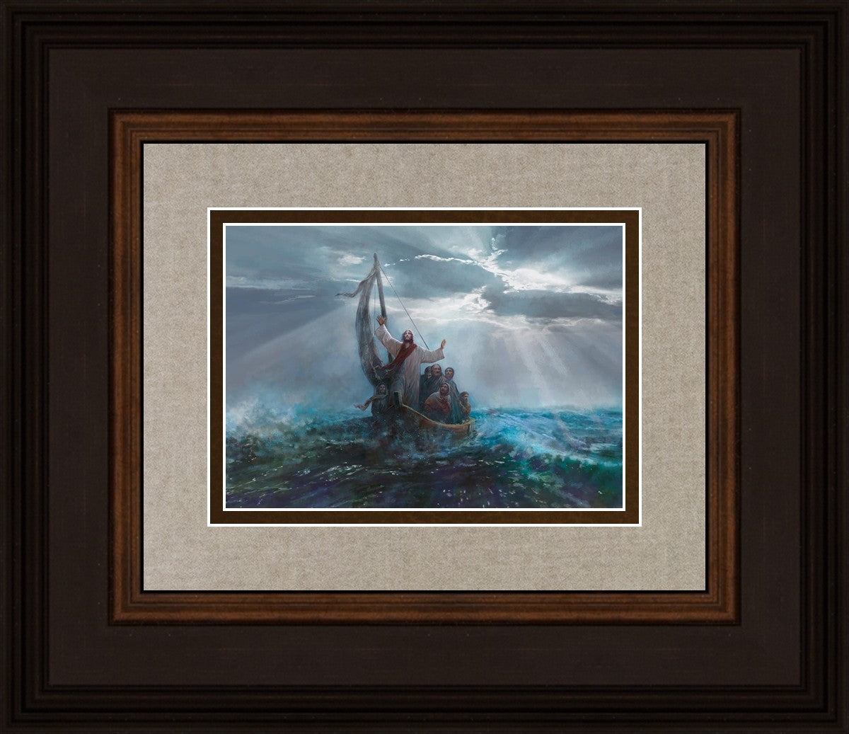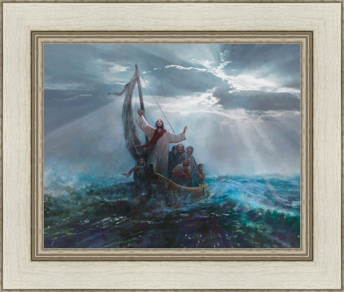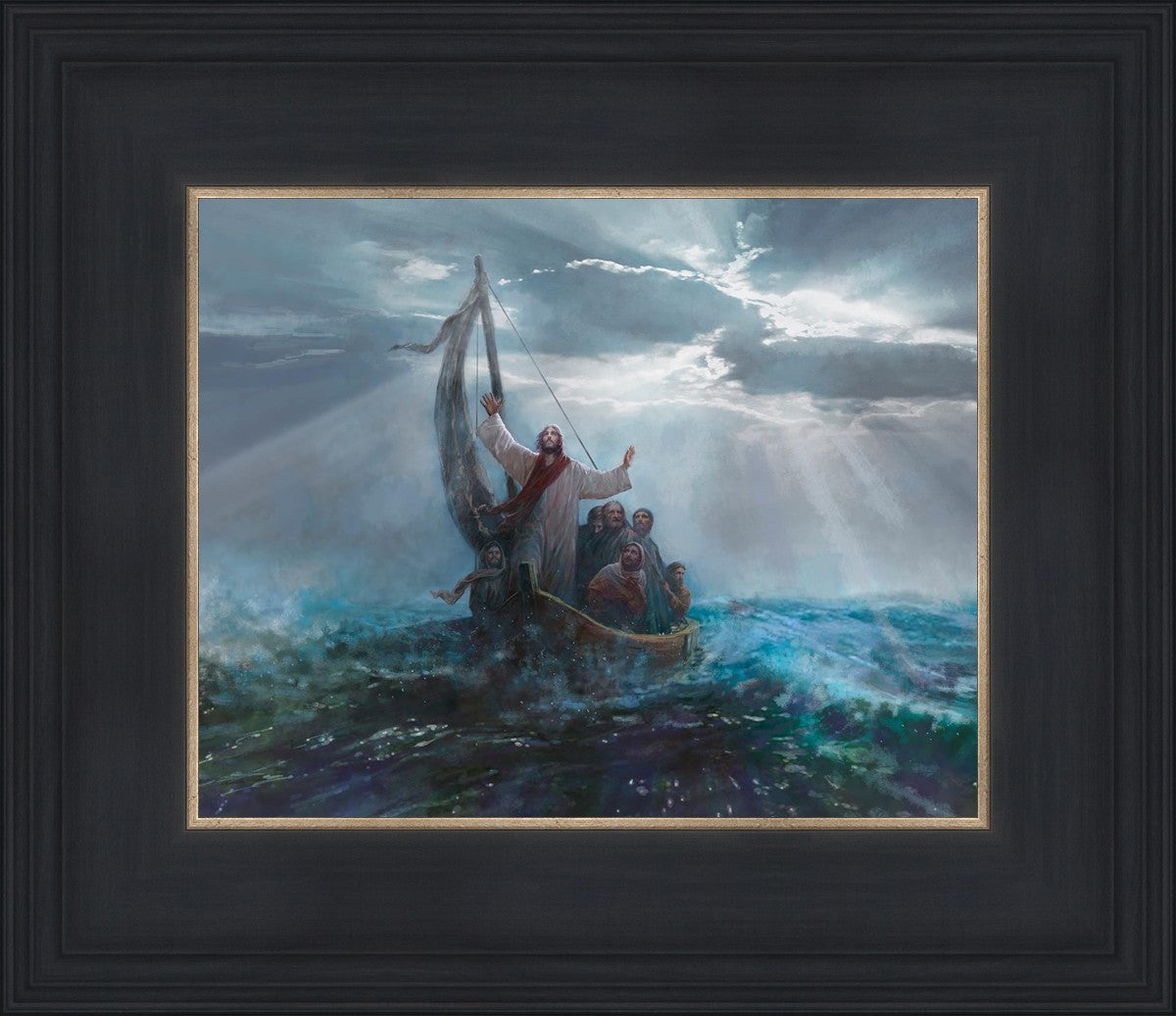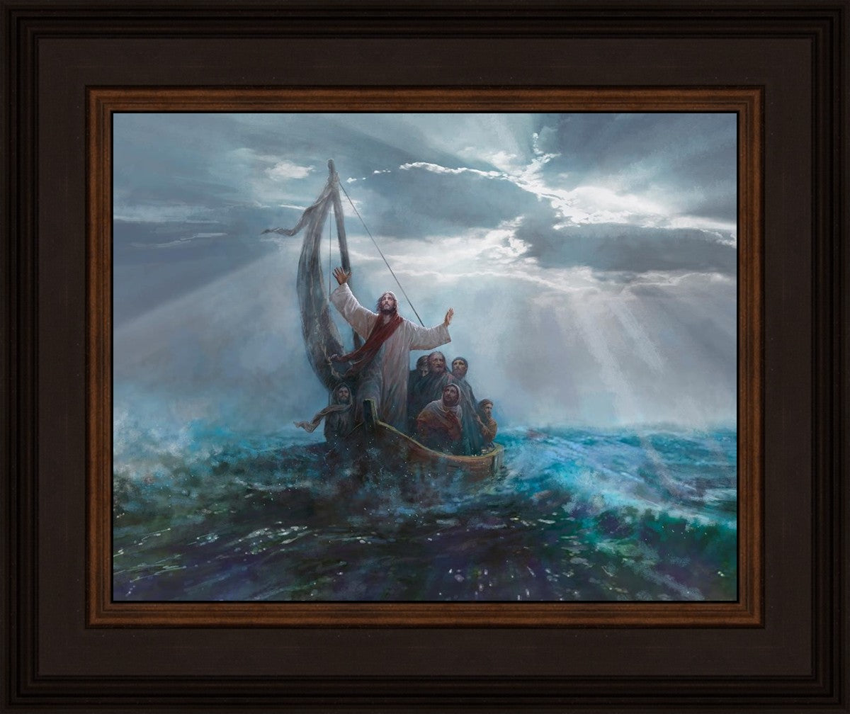 Peace Be Still is a painting by Yongsung Kim. This painting depicts Jesus Christ calming the raging sea amidst a storm.
