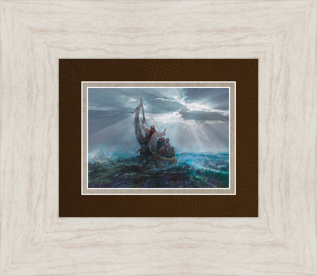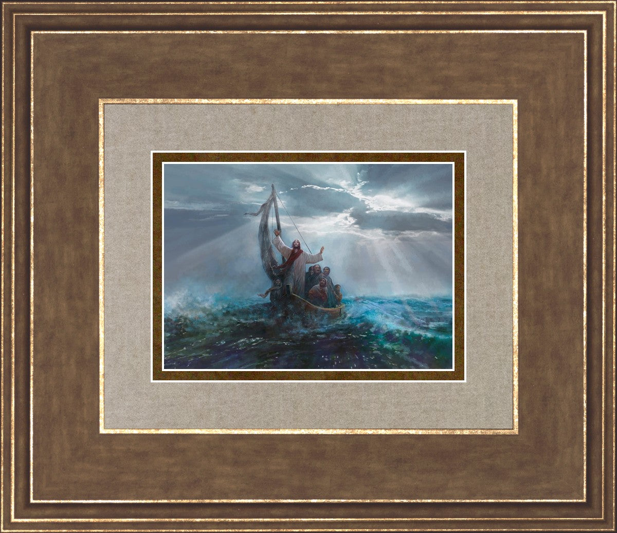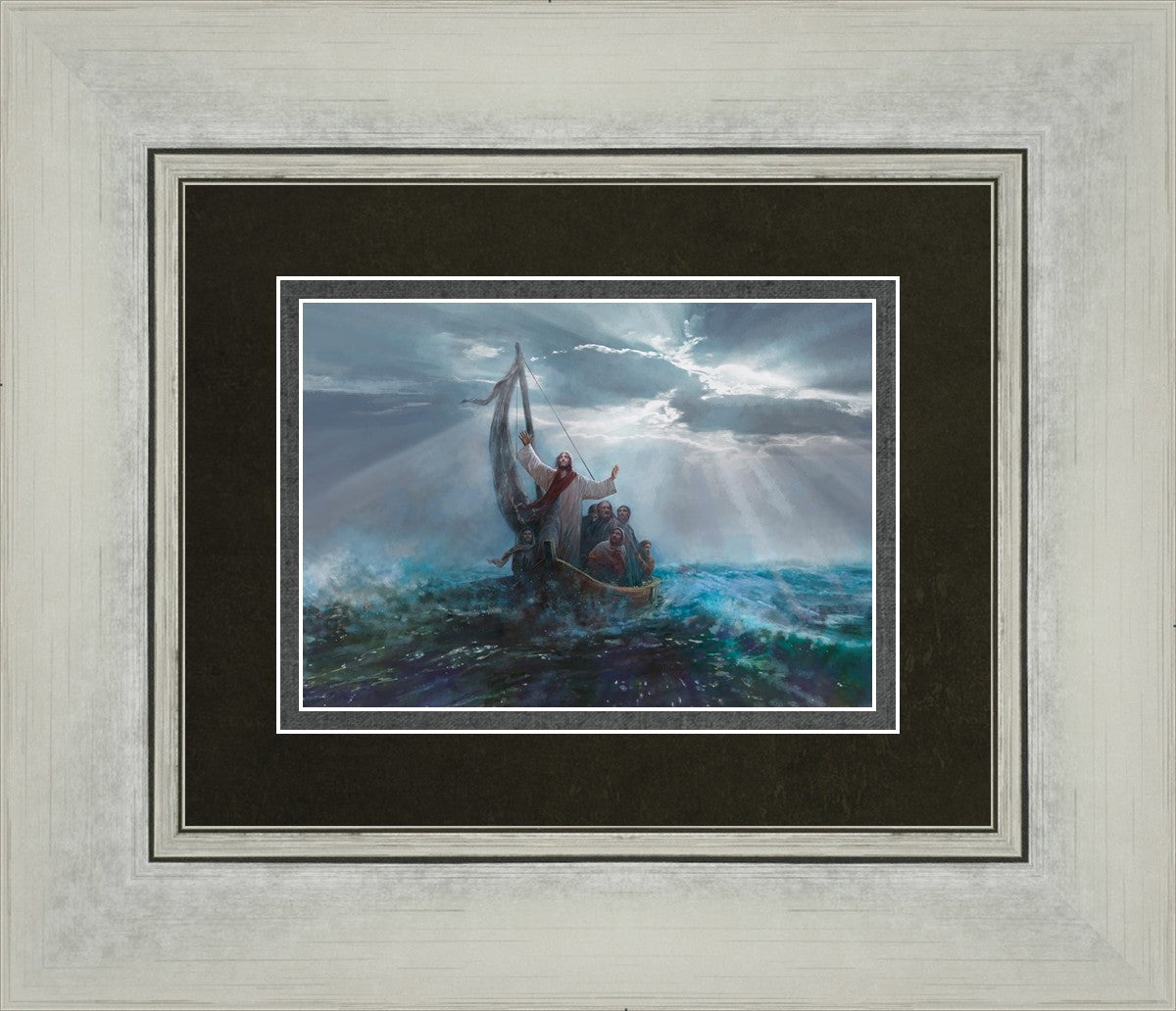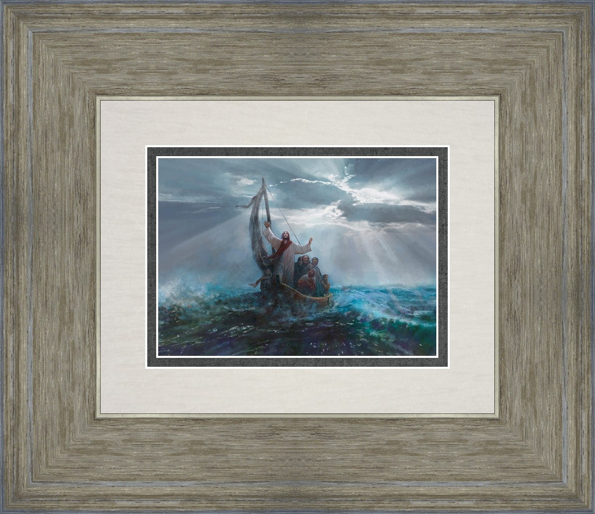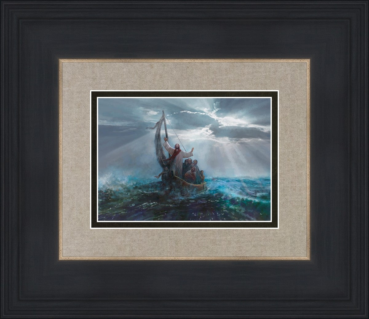 Peace Be Still is a painting by Yongsung Kim. This painting depicts Jesus Christ calming the raging sea amidst a storm.