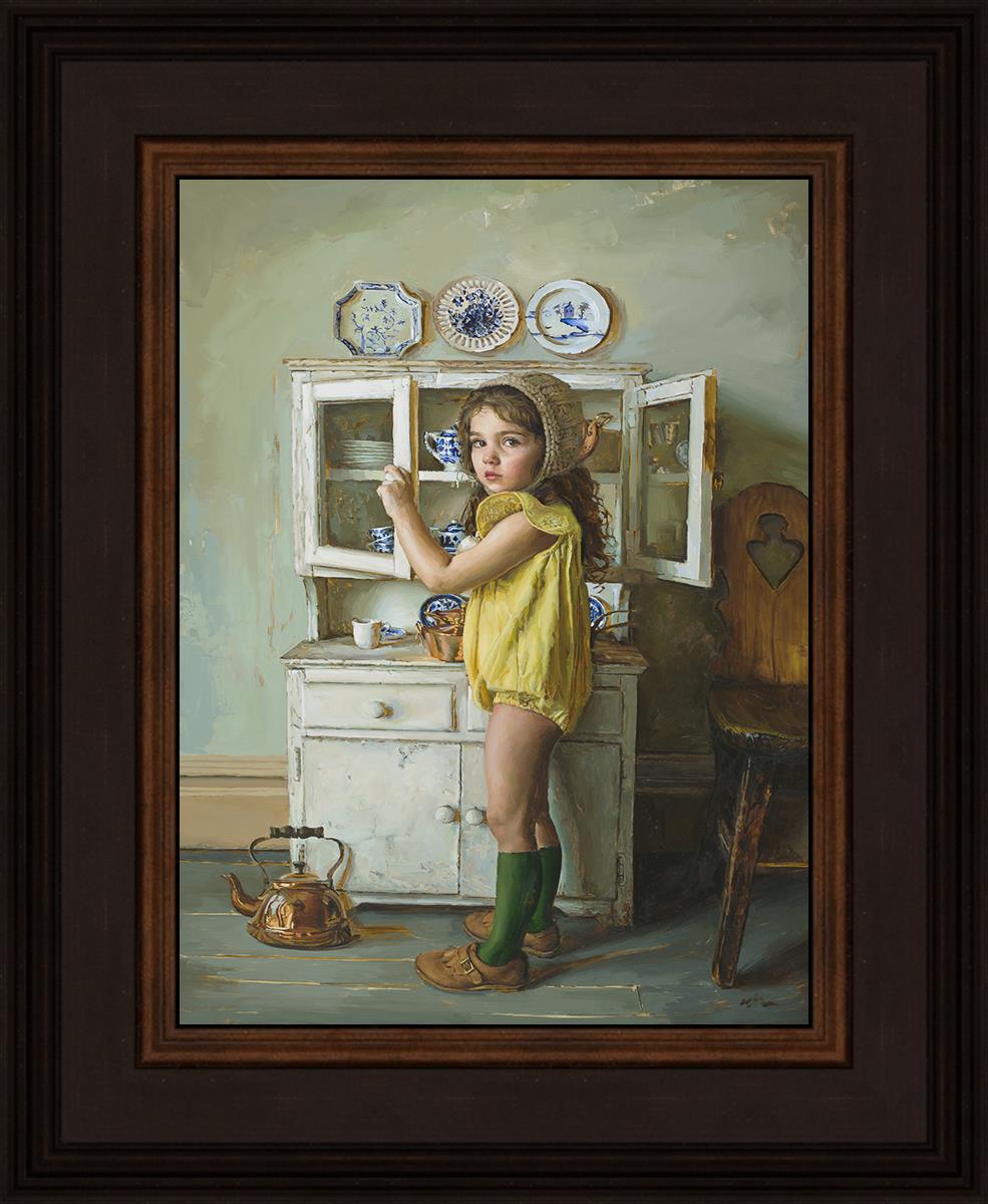 “I am interested in the pressure of perfection that we face in today's social structure. In our current society, we often allow social media to control the expectations of the path our lives should lead. This can lead to a false public identity that is more about display than actual interaction, while hiding one’s true self. I hope to call attention to these new social norms that are impeding our mental ability to reach out to others and allow us to accept both our beauty and imperfections. By placing prescribed expectations on ourselves, we perpetuate inadequacy and block the feelings of gratitude for what we have and are. By comparing our misfortunes to the successes of others we are unfairly keeping ourselves from being truly happy. My paintings call to attention the idea of this image manufacturing by utilizing the figure as an object, rather than a portrait even though the overall composition remains a portrait. This along with other items meant for display as seen in homes and stores creates a composition blocked-in with tight drawing and form, painterly strokes and careful attention to color harmonies. These elements allow me to frame the model as a literal item in the storefront or interior design rather than being a telling image of the personality of the sitter. The work is less ambiguous and more literal than mainstream modern art, as I portray my subject matter in a naturalistic manner. This is slowly transitioning to even more literal narrative as I further explore the language and stories of my subjects. My goal is to bridge the gap between conceptual art and classically trained figurative paintings and create pieces that use beauty, technical mastery, and a timeless subject matter to convey a symbolic narrative that becomes a visual manifestation of the internal psychological space where perfectionism lives.”