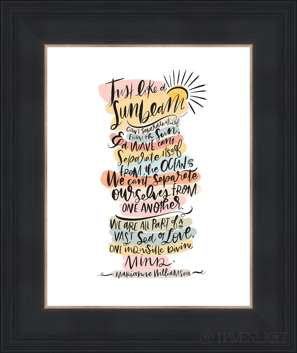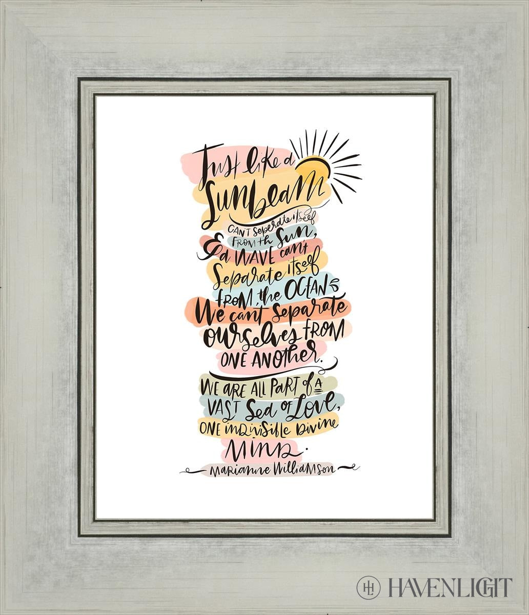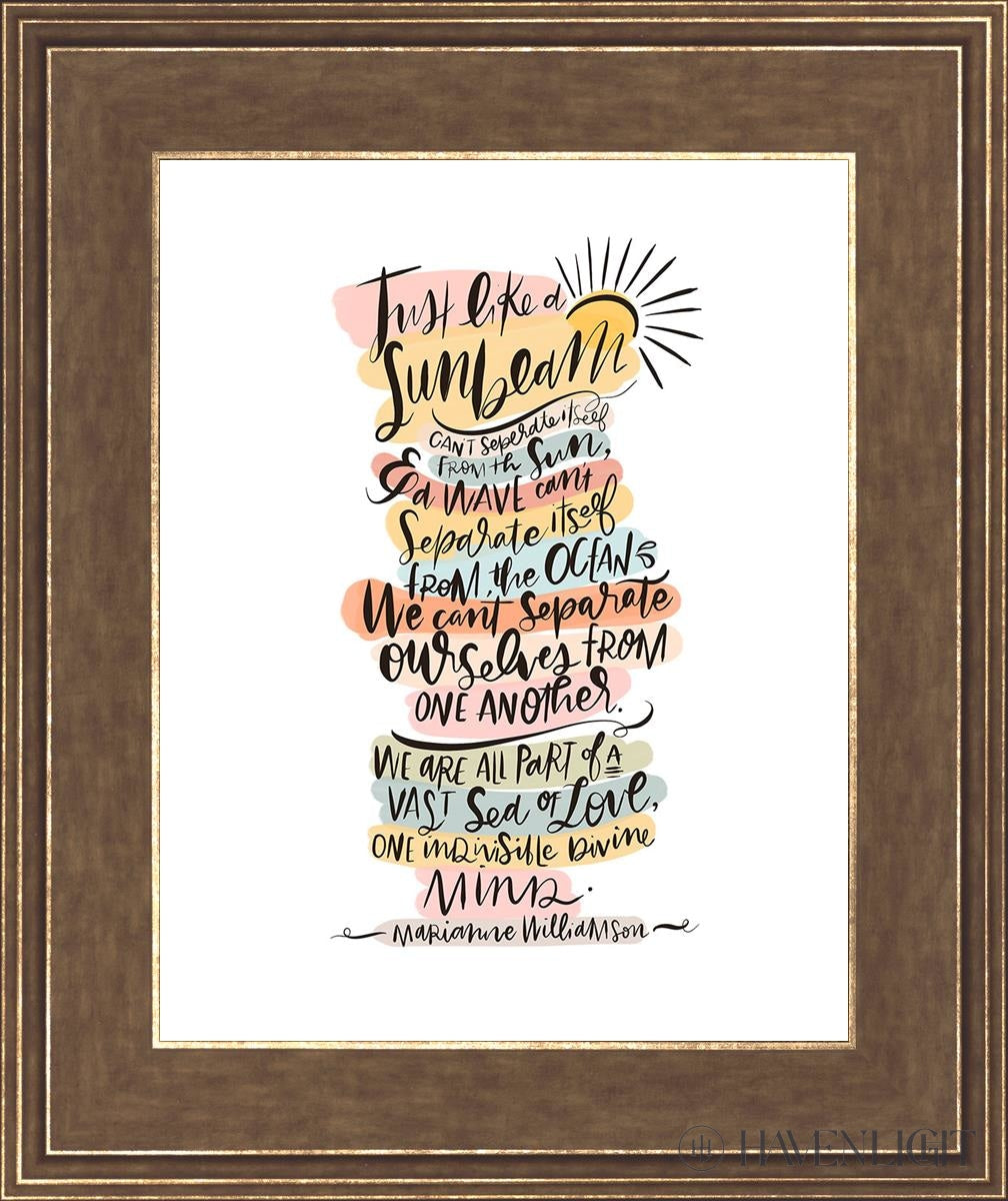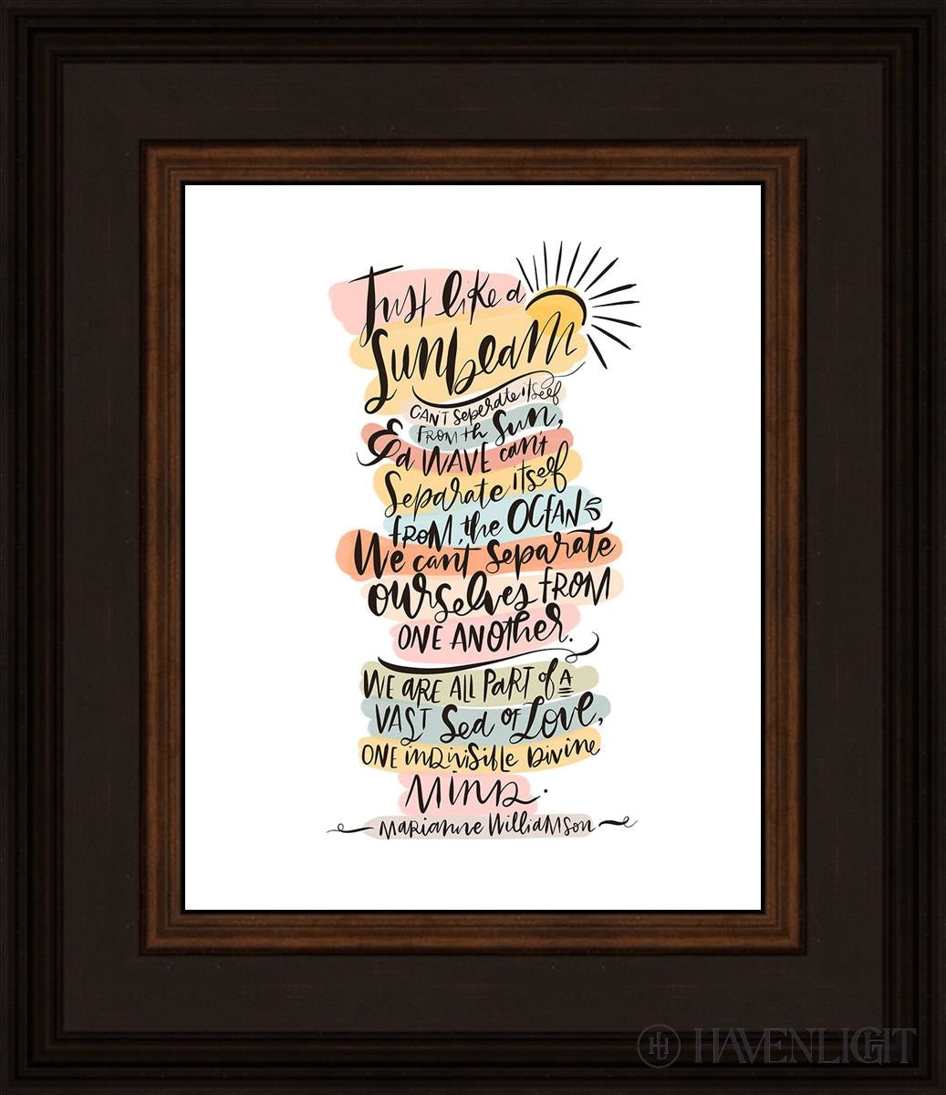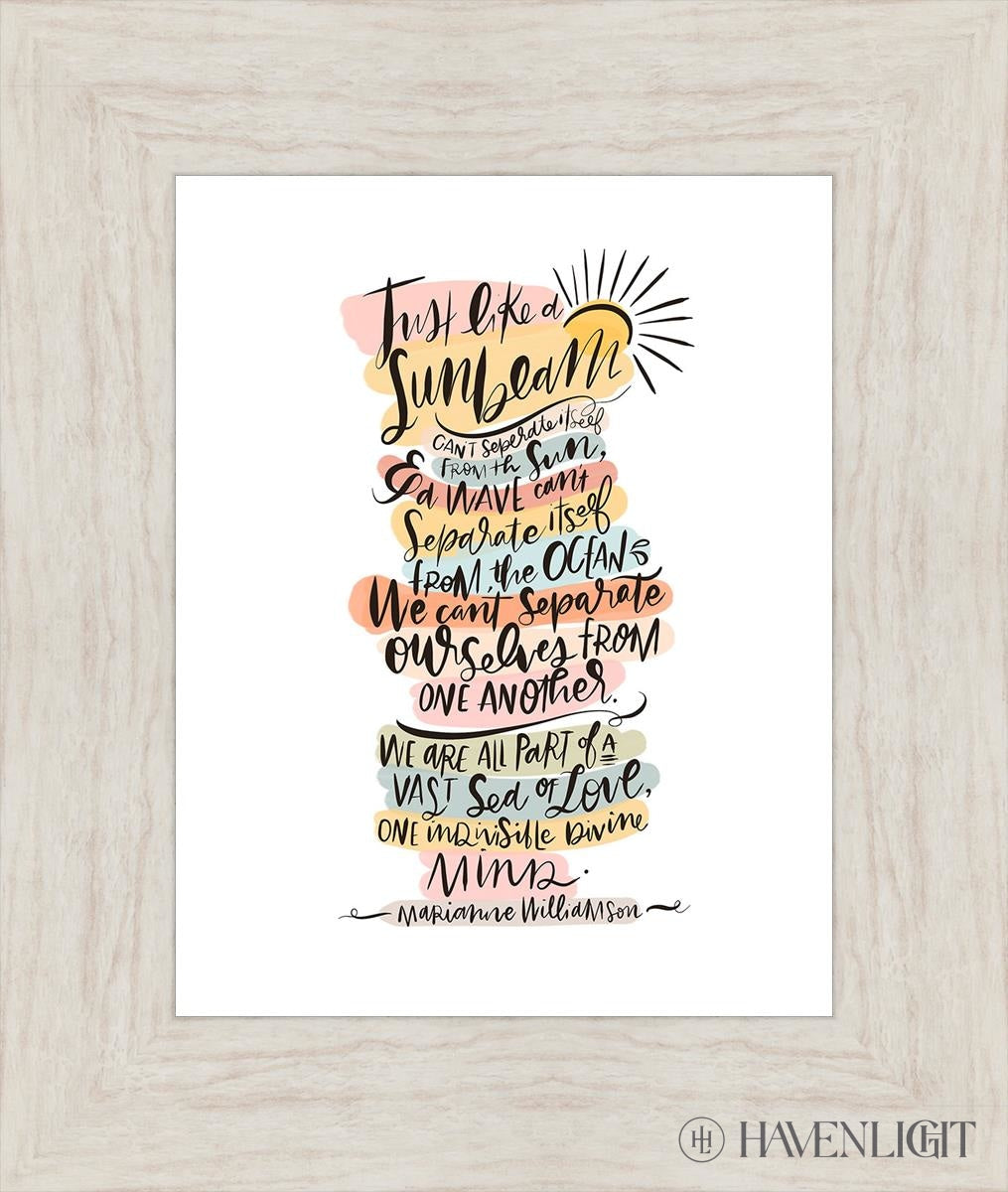 Insprational home decor with the words just like a sunbeam can't seperate itself from the sun, and a wave can't seperate from the oceans, we can't seperate ourselves from one another. We are all part of a vast sea of love, one indivisible, divine mind. - Marianne Williamson