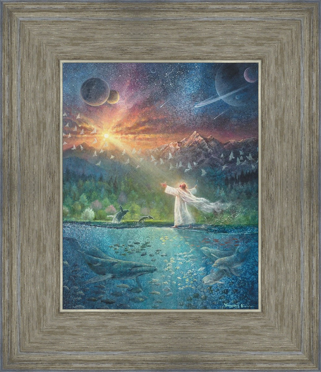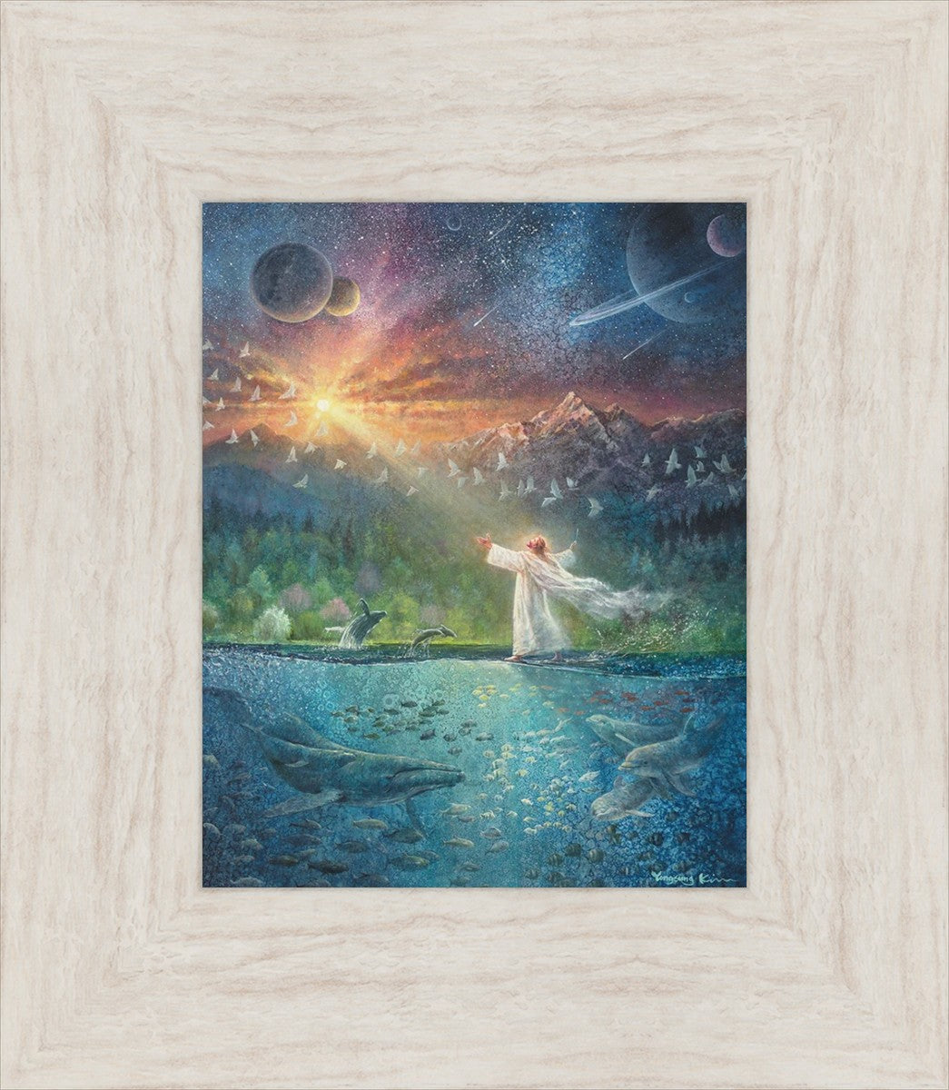 My struggle over all that time was to capture these initial emotions and vision. I wanted to show ALL creation - the sky, the sun, the moon, the Milky Way, the stars, the land, and the sea. In this, I would bring together all the creatures, all the creations of God in nature and have them praising God, according to the direction of the Creator, Jesus. This was a beautiful and majestic scene to just simply imagine.
