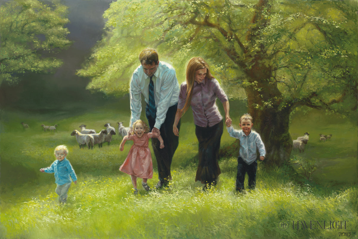 The little girl who posed as a model for this painting has Cerebral Palsy. She cannot walk on her own, yet she is rejoicing in the opportunity to have her father help her through the field. If only we could be like this child, and joyfully receive the assistance of others and our Heavenly parents. Then we could see how children teach us priceless lessons when we endeavor to teach them.