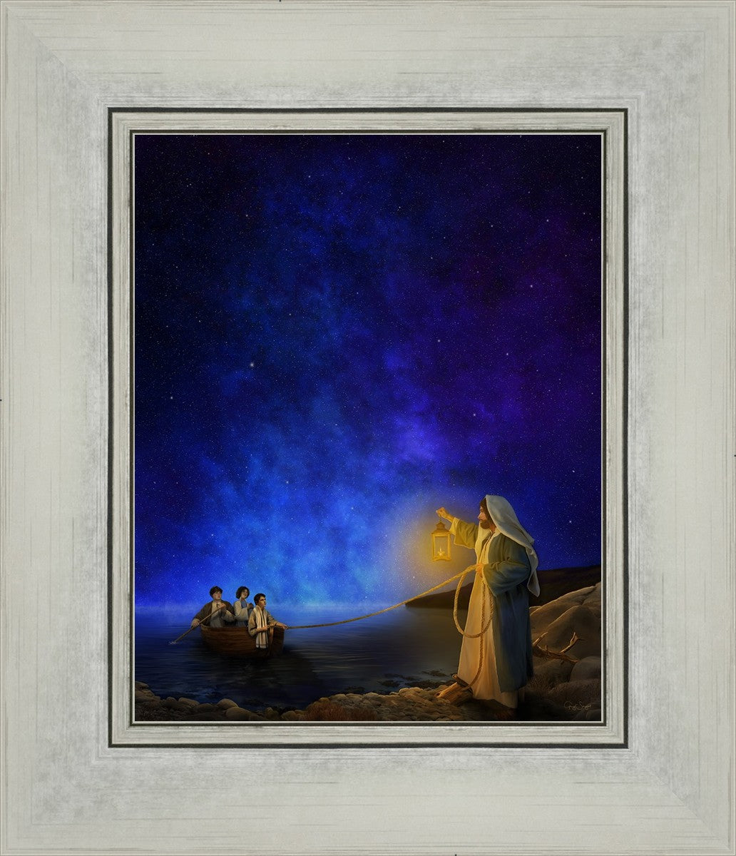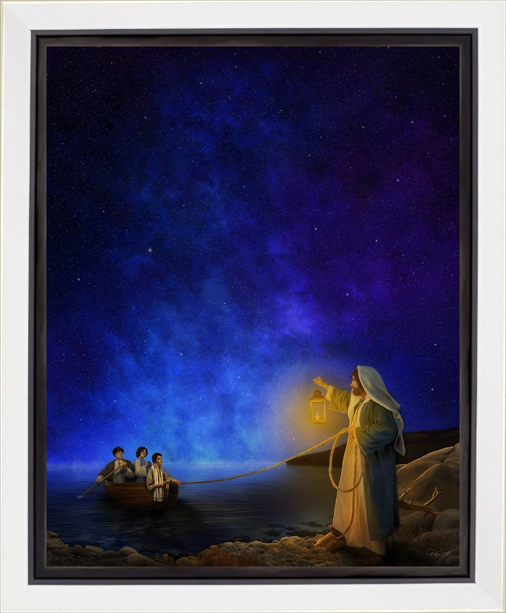Three young men set out one after noon for an adventure on the Sea of Galilee. Initially, they enjoyed the cool breeze, but as the heat of the afternoon continued the breeze turned into a fierce wind, blowing them away from shore. As the evening approached they realized that they were exhausted and lost at sea. With no sense of direction, they eventually did not even know which way the shore was. They felt hopeless until they spotted a distant light on the shore. Rowing tirelessly towards it, they realized it was the Savior, who guided them safely to shore with his lamp and eventually a helping hand. Grateful for their rescue, they shared their story of finding hope in the midst of darkness by heading toward the light on the shore.