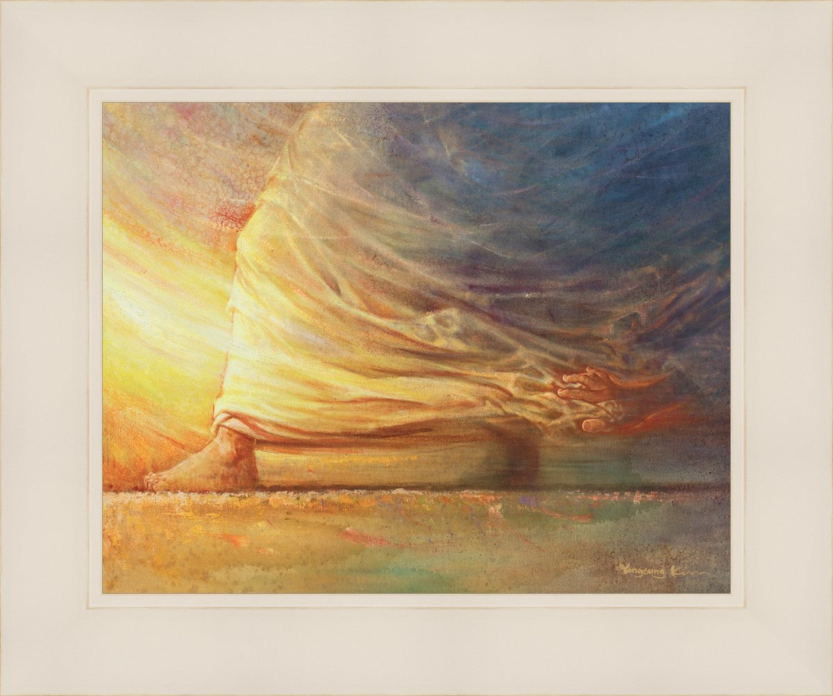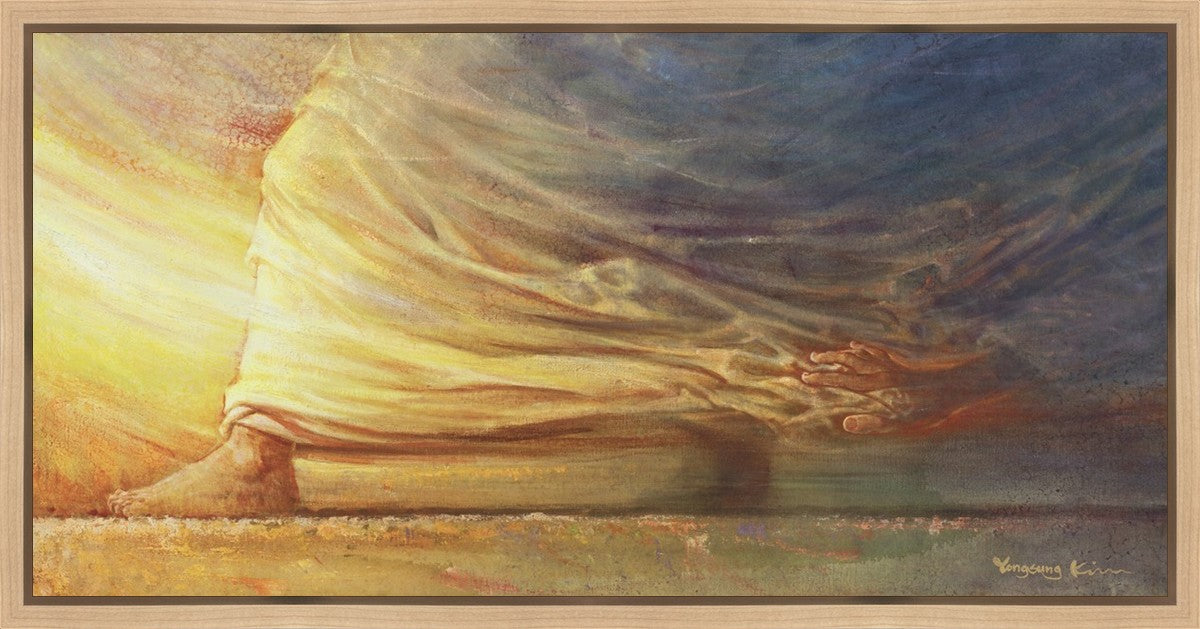Touch of Faith by Yongsung Kim beautifully illustrates the biblical story of the woman with the issue of blood, reaching out to touch the Saviors clothes and experiencing miraculous healing. This captivating painting captures the essence of divine intervention, faith, and healing, resonating with viewers seeking inspiration and spiritual connection.