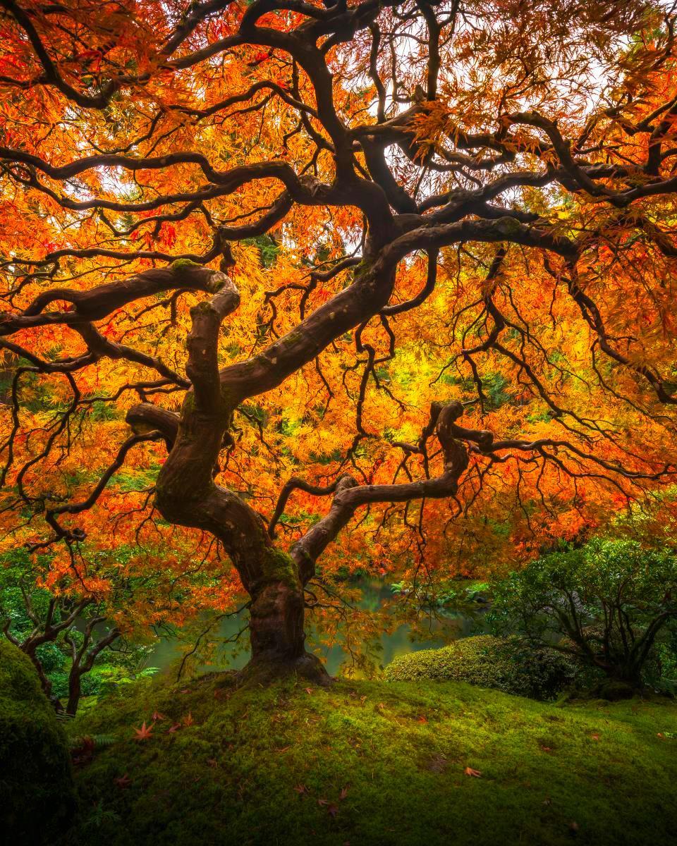 Perhaps the most photographed tree in the world, this maple tree sits on a main pathway inside the Portland Japanese Garden, in Portland Oregon. The size is deceptive as it's much smaller than it appears.