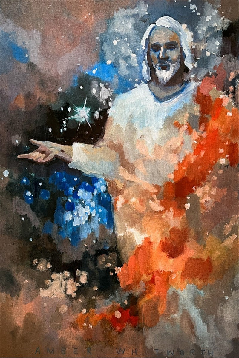 She loves to paint human relationships; specifically those between parents and children, and husbands and wives. Her infatuations include old family photographs, elderly wrinkles, wild & uncontrolled children, and the candid moments of motherhood. Her work is currently blooming into a narrative style, echoing scriptural texts and Christian doctrines. Amber is obsessed with color theory. She has dedicated herself to many years of self-education and painting practice.
